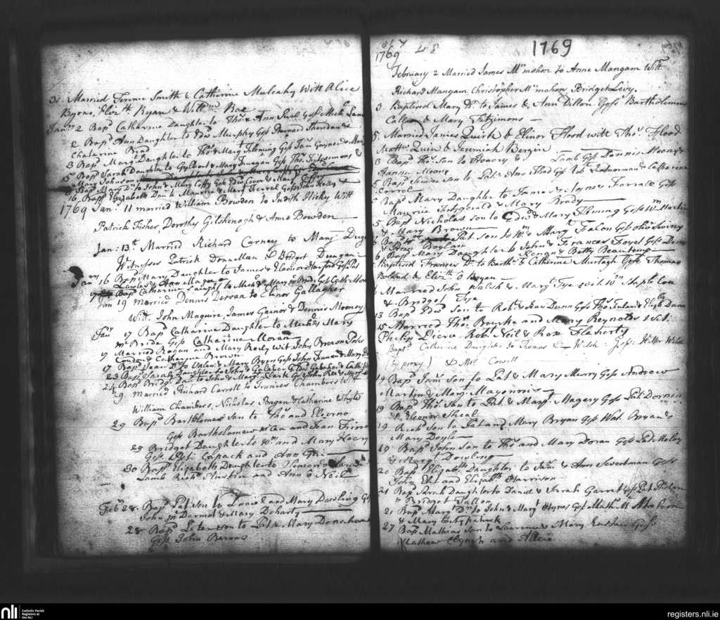 St. Mary's, Dublin city; County of Dublin; Archdiocese of Dublin. Baptisms, Marriages, Dec. 1768 to Feb. 1769
