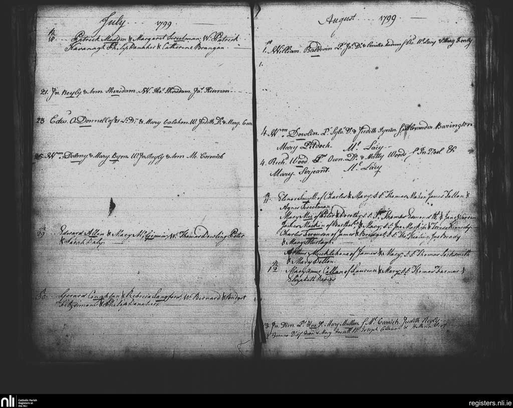 St. Mary's, Dublin city; County of Dublin; Archdiocese of Dublin. Baptisms, July 1799 to Aug. 1799