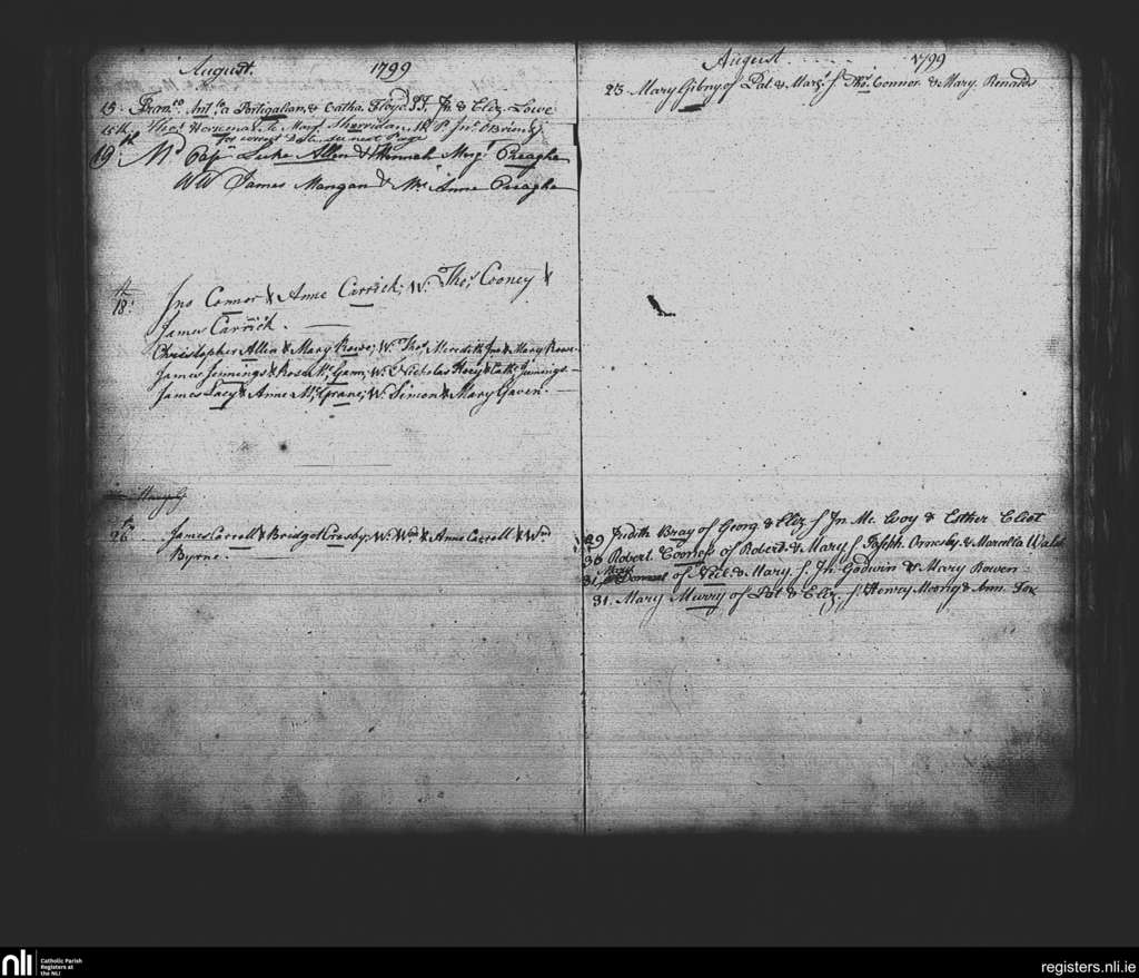 St. Mary's, Dublin city; County of Dublin; Archdiocese of Dublin. Baptisms, Aug. 1799