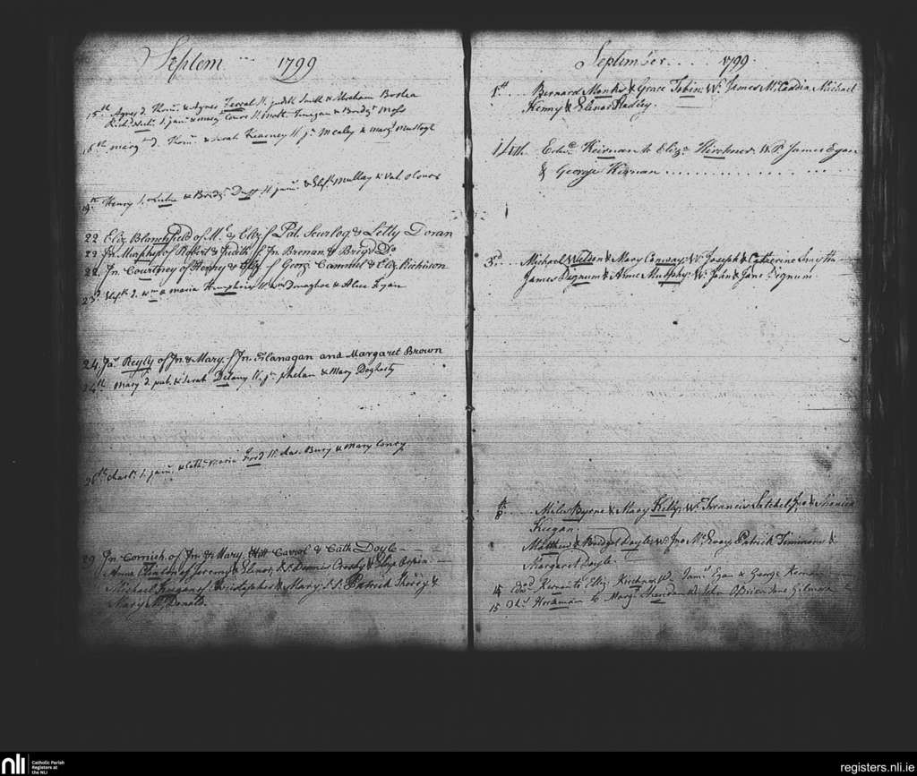 St. Mary's, Dublin city; County of Dublin; Archdiocese of Dublin. Baptisms, Sep. 1799