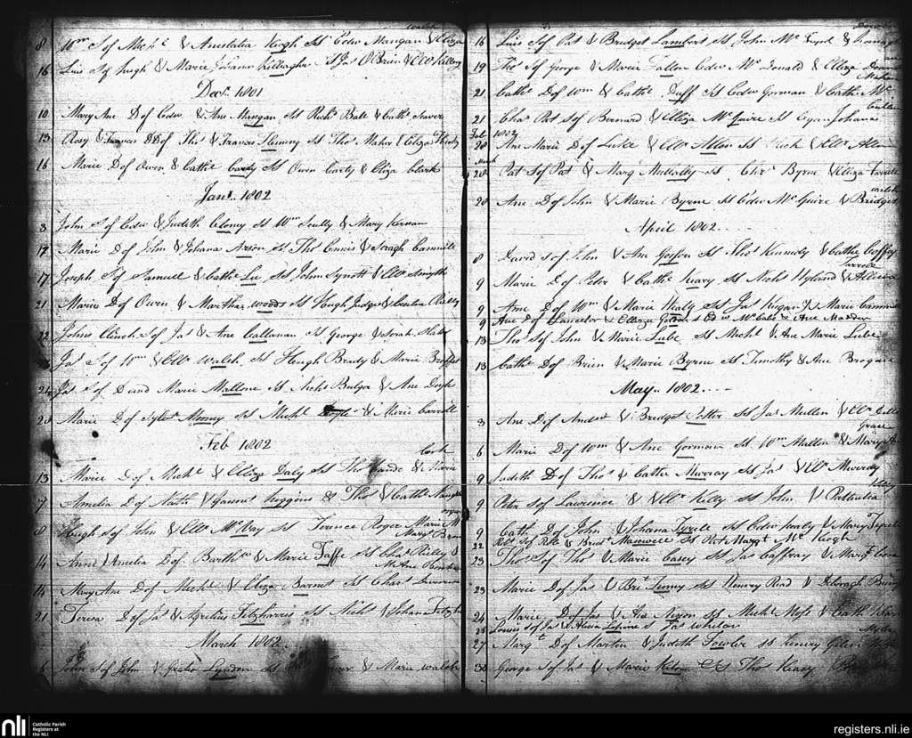 St. Mary's, Dublin city; County of Dublin; Archdiocese of Dublin. Baptisms, Nov. 1801 to May 1802