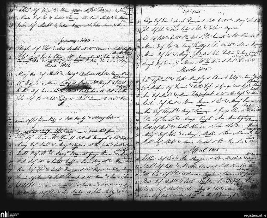 St. Mary's, Dublin city; County of Dublin; Archdiocese of Dublin. Baptisms, Dec. 1802 to Apr. 1805