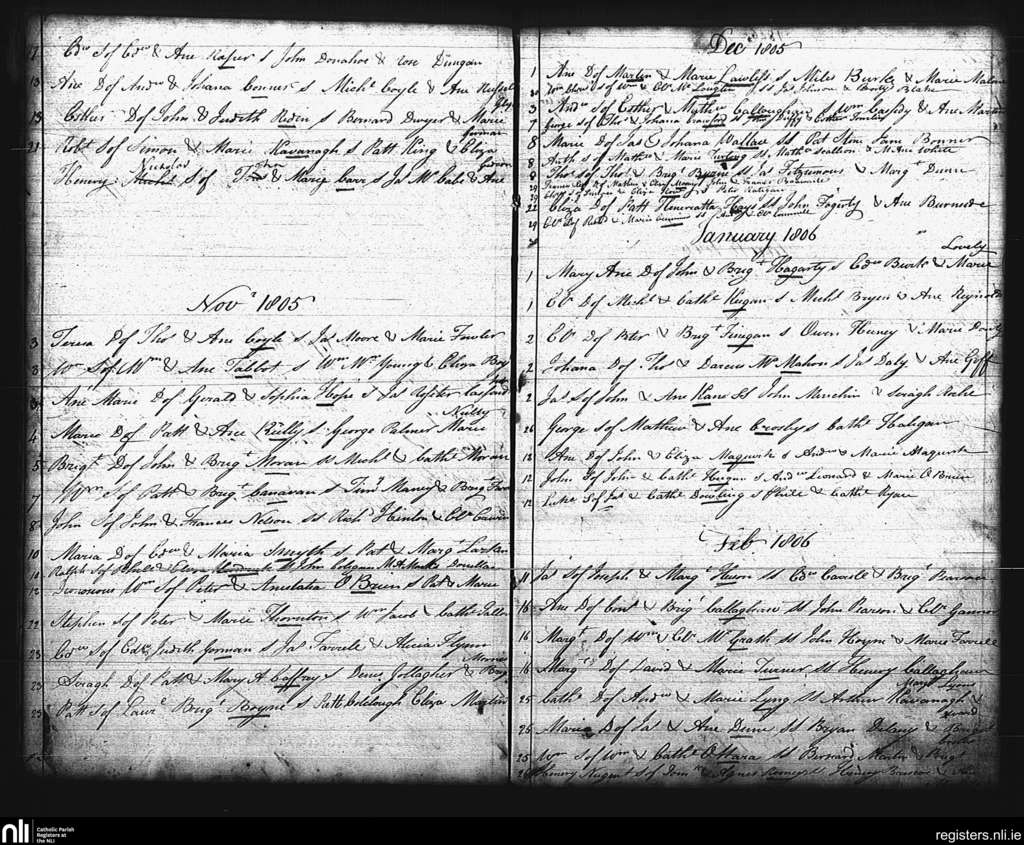 St. Mary's, Dublin city; County of Dublin; Archdiocese of Dublin. Baptisms, Oct. 1805 to Feb. 1806