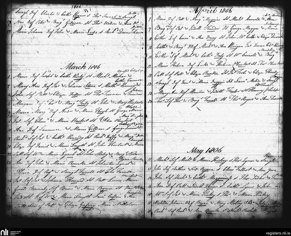 St. Mary's, Dublin city; County of Dublin; Archdiocese of Dublin. Baptisms, Feb. 1806 to May 1806