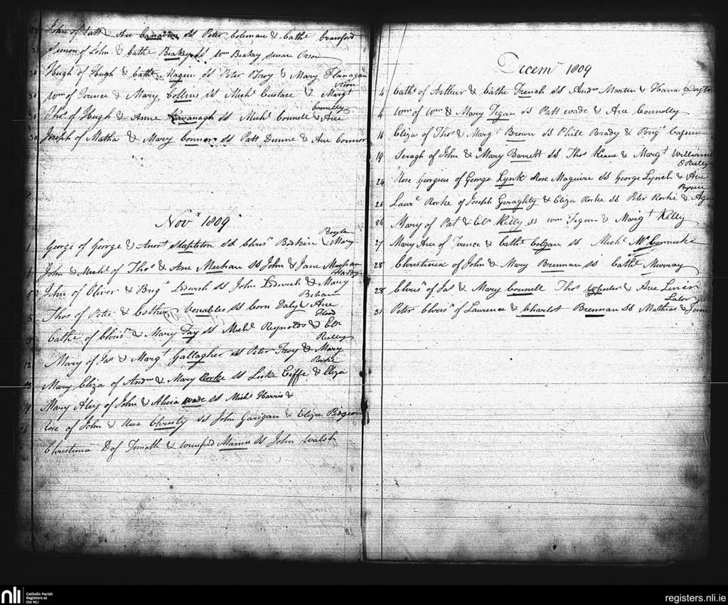 St. Mary's, Dublin city; County of Dublin; Archdiocese of Dublin. Baptisms, Oct. 1809 to Dec. 1809
