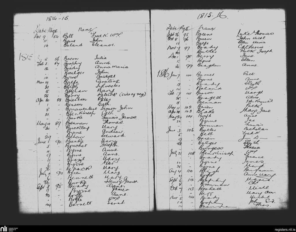St. Mary's, Dublin city; County of Dublin; Archdiocese of Dublin. Baptisms, Dec. 1814 to Nov. 1816