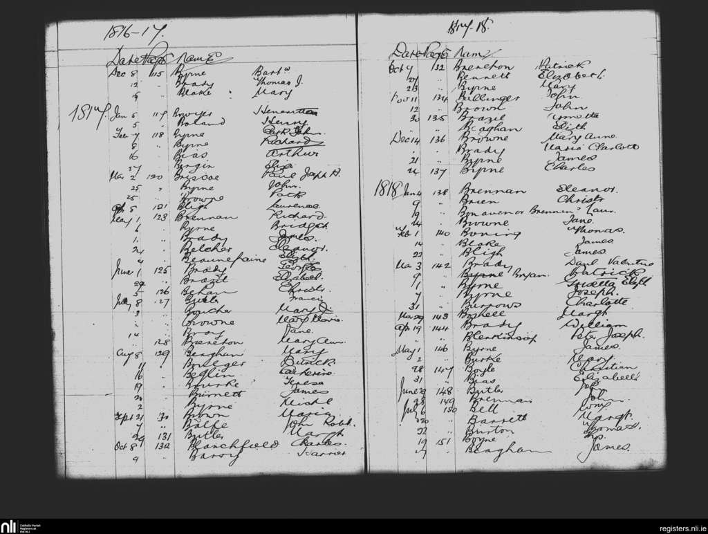 St. Mary's, Dublin city; County of Dublin; Archdiocese of Dublin. Baptisms, Dec. 1816 to July 1818