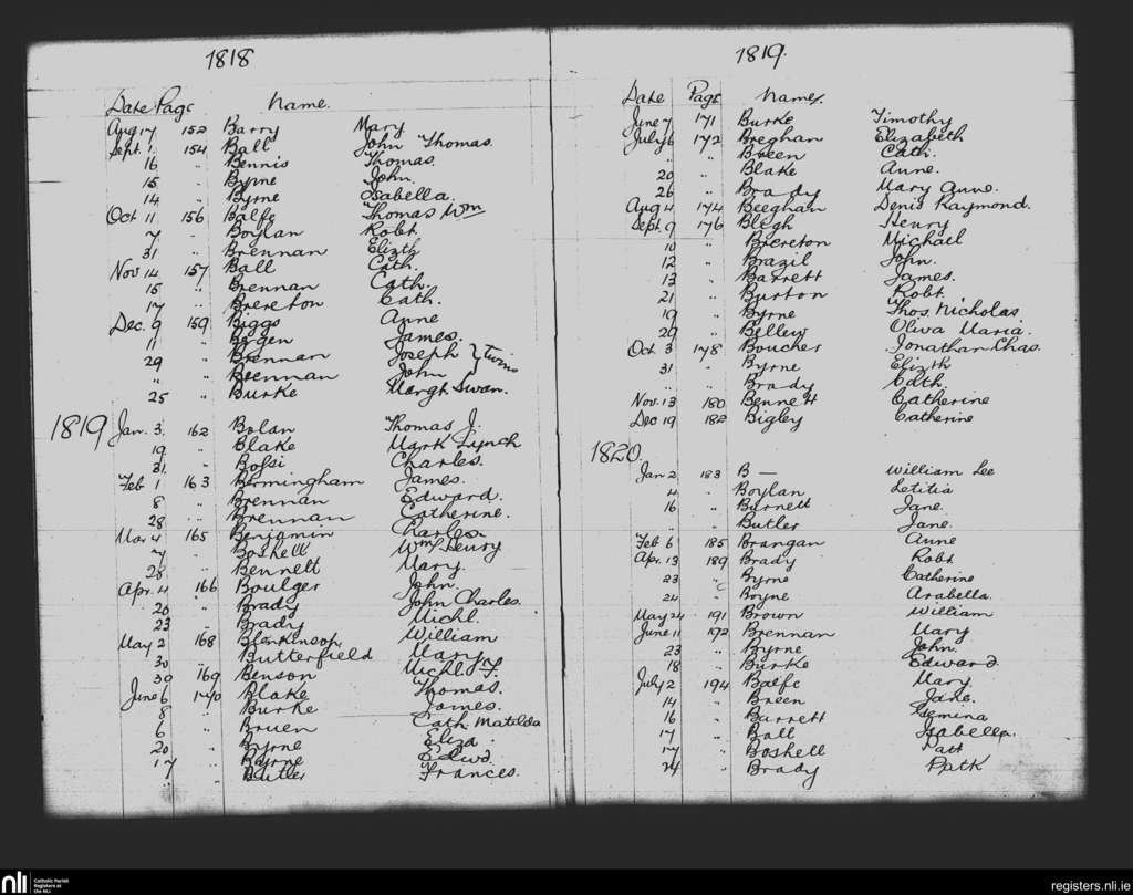 St. Mary's, Dublin city; County of Dublin; Archdiocese of Dublin. Baptisms, Aug. 1818 to July 1820