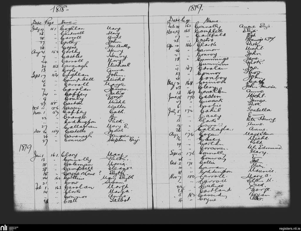 St. Mary's, Dublin city; County of Dublin; Archdiocese of Dublin. Baptisms, July 1818 to Nov. 1819