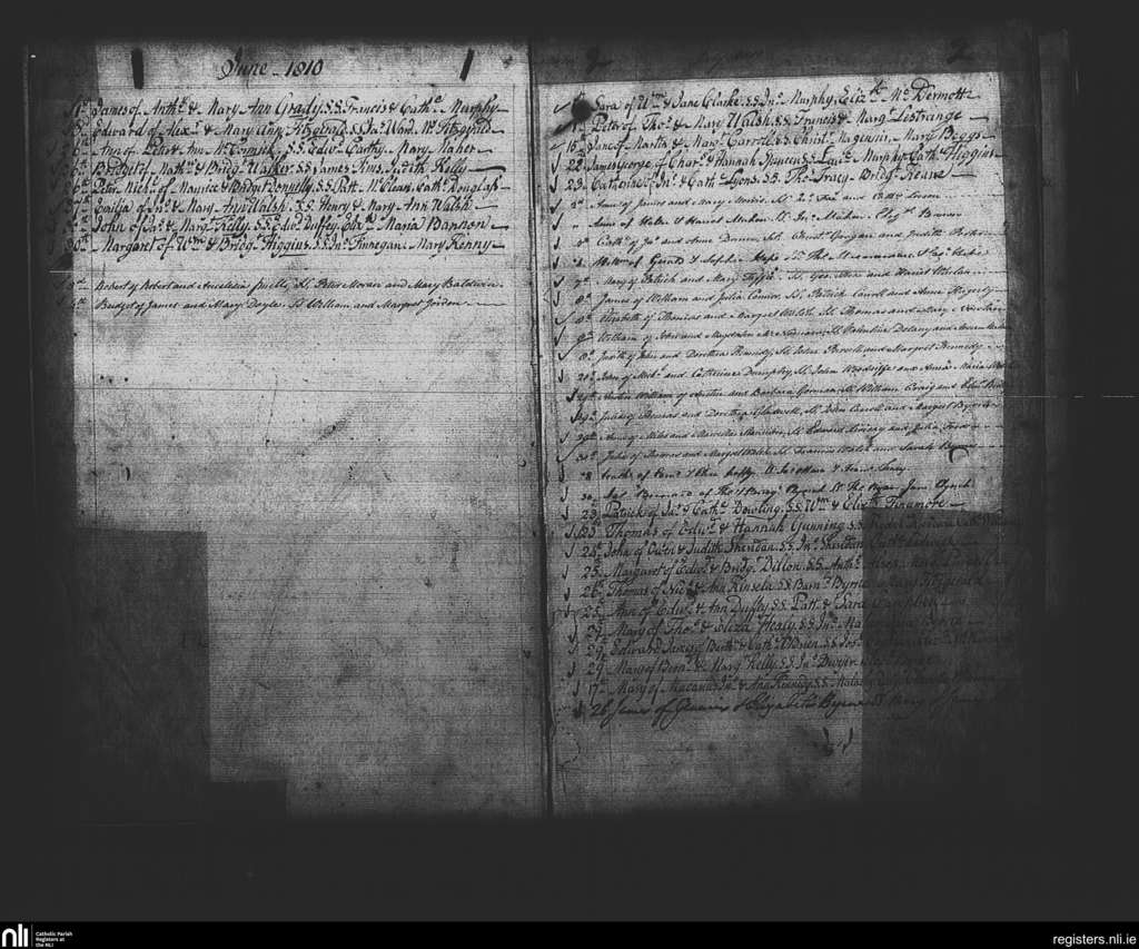 St. Mary's, Dublin city; County of Dublin; Archdiocese of Dublin. Baptisms, June 1810 to July 1810