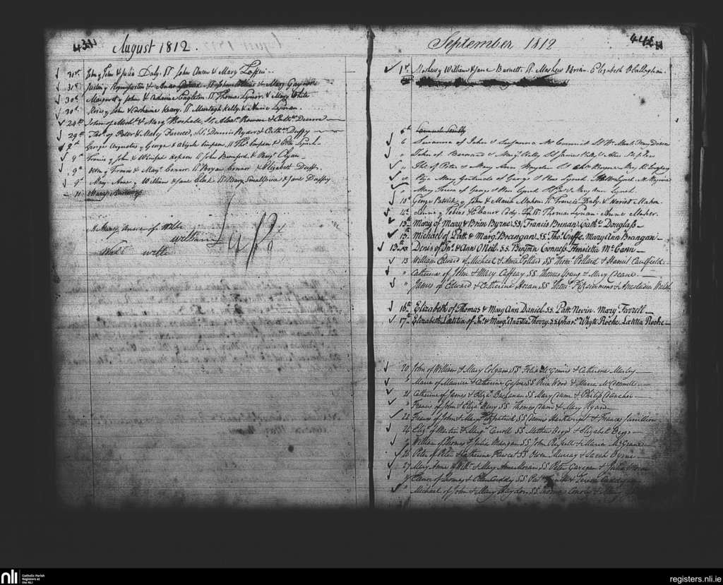St. Mary's, Dublin city; County of Dublin; Archdiocese of Dublin. Baptisms, Aug. 1812 to Sep. 1812