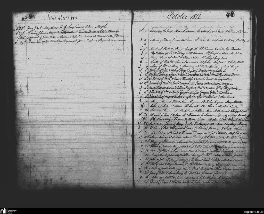 St. Mary's, Dublin city; County of Dublin; Archdiocese of Dublin. Baptisms, Sep. 1812 to Oct. 1812