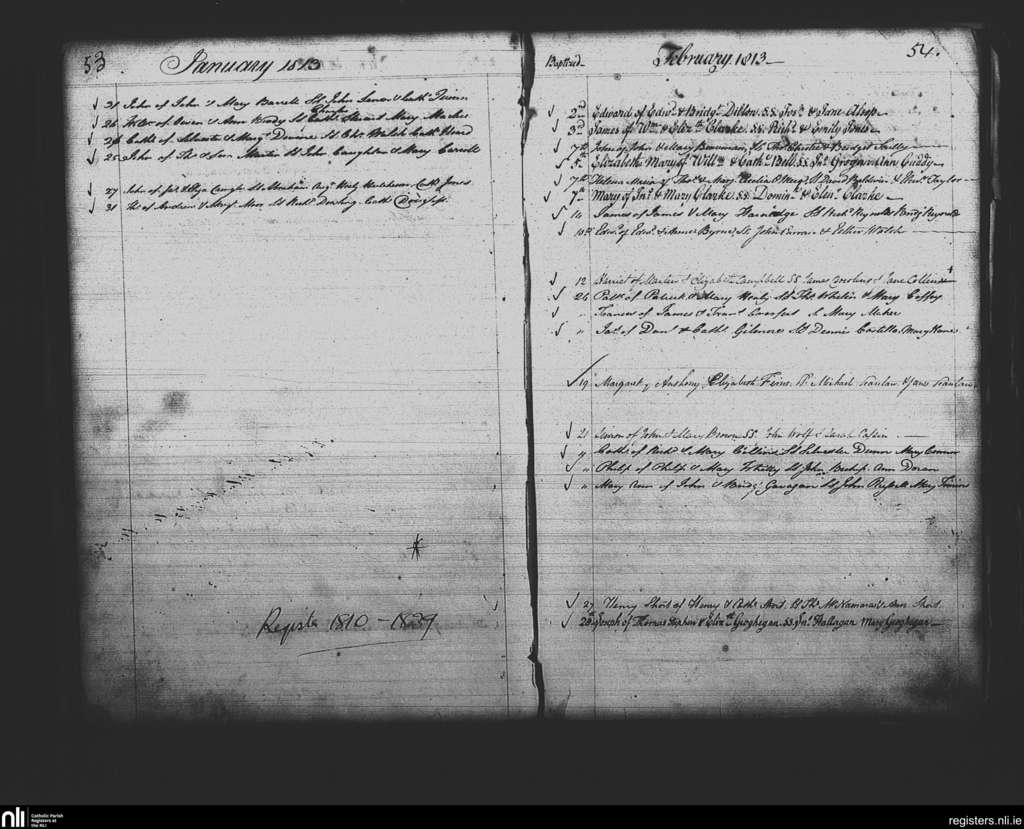 St. Mary's, Dublin city; County of Dublin; Archdiocese of Dublin. Baptisms, Jan. 1813 to Feb. 1813