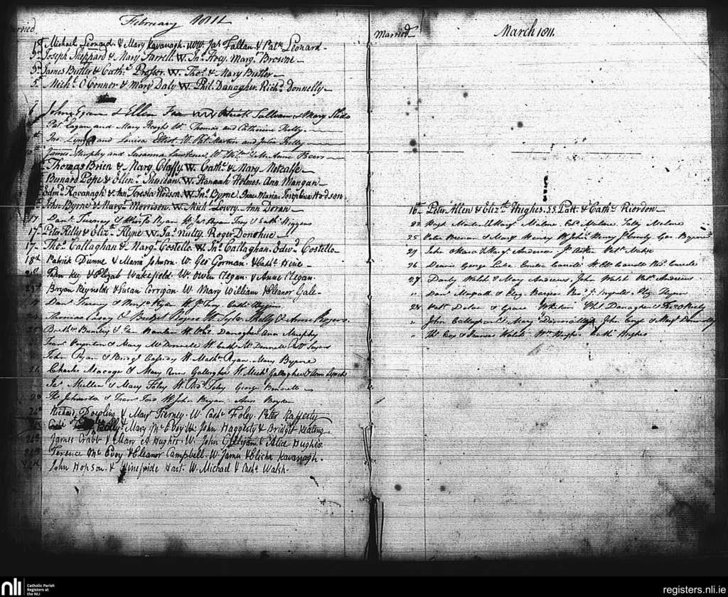 St. Mary's, Dublin city; County of Dublin; Archdiocese of Dublin. Marriages, Feb. 1811 to Mar. 1811