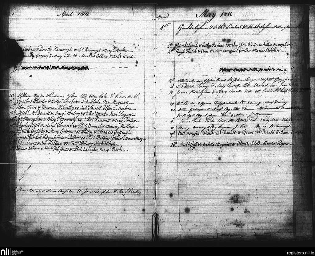 St. Mary's, Dublin city; County of Dublin; Archdiocese of Dublin. Marriages, Apr. 1811 to May 1811