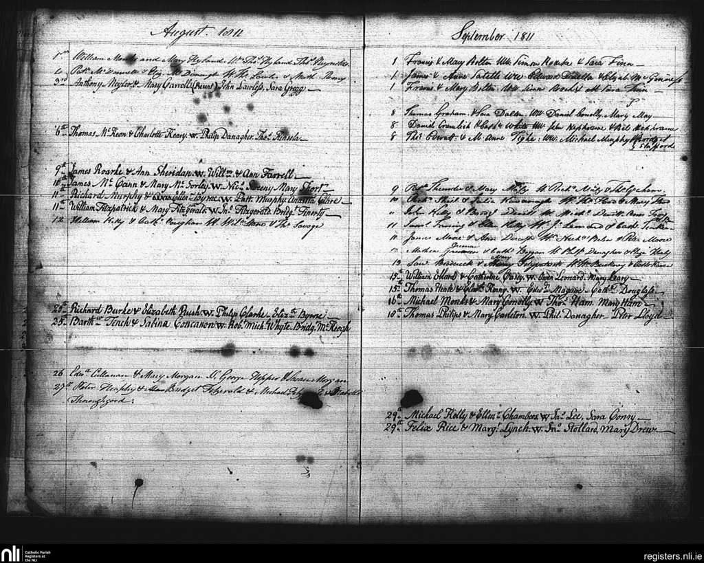 St. Mary's, Dublin city; County of Dublin; Archdiocese of Dublin. Marriages, Aug. 1811 to Sep. 1811
