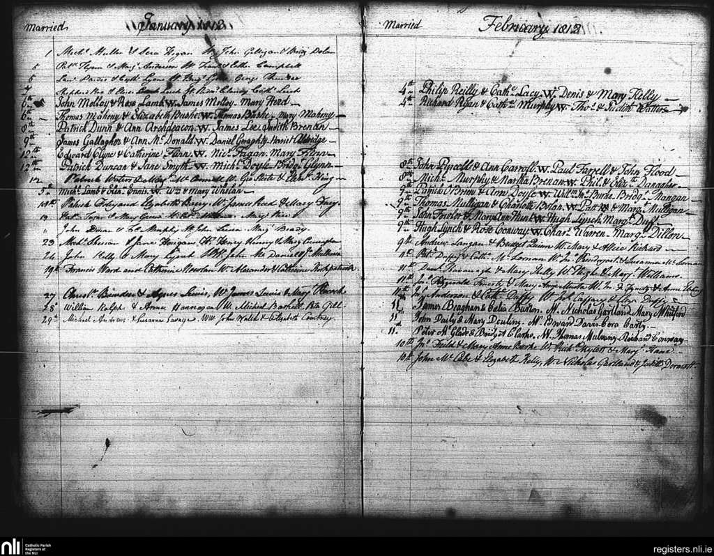 St. Mary's, Dublin city; County of Dublin; Archdiocese of Dublin. Marriages, Jan. 1812 to Feb. 1812