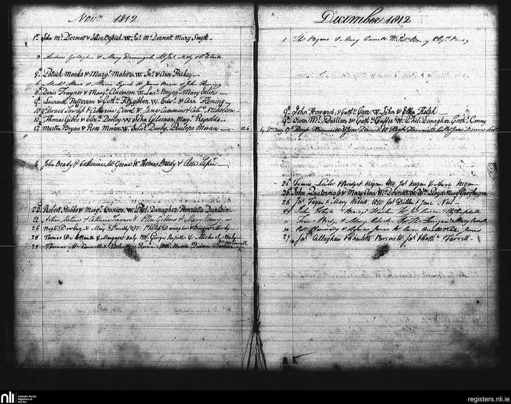 St. Mary's, Dublin city; County of Dublin; Archdiocese of Dublin. Marriages, Nov. 1812 to Dec. 1812