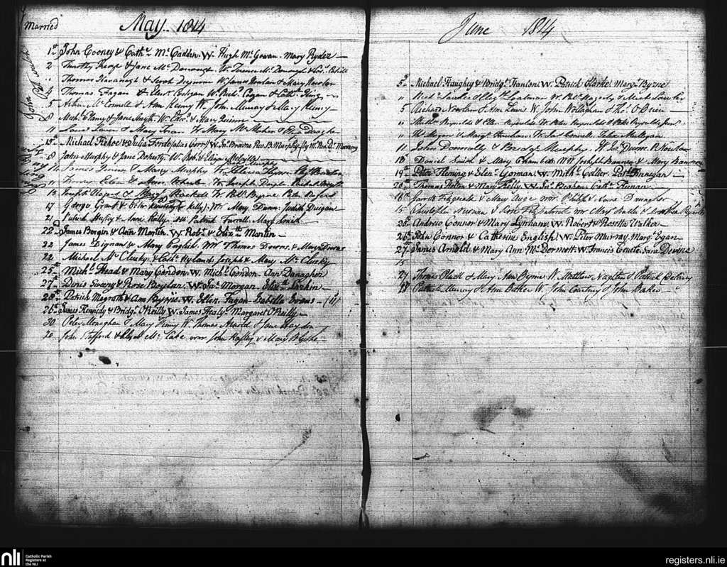 St. Mary's, Dublin city; County of Dublin; Archdiocese of Dublin. Marriages, May 1814 to June 1814