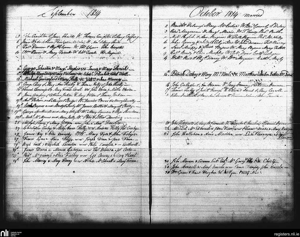 St. Mary's, Dublin city; County of Dublin; Archdiocese of Dublin. Marriages, Sep. 1814 to Oct. 1814