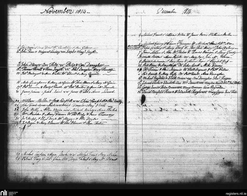 St. Mary's, Dublin city; County of Dublin; Archdiocese of Dublin. Marriages, Nov. 1814 to Dec. 1814