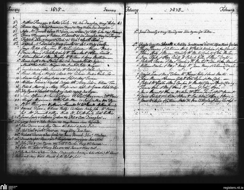 St. Mary's, Dublin city; County of Dublin; Archdiocese of Dublin. Marriages, Jan. 1815 to Feb. 1815