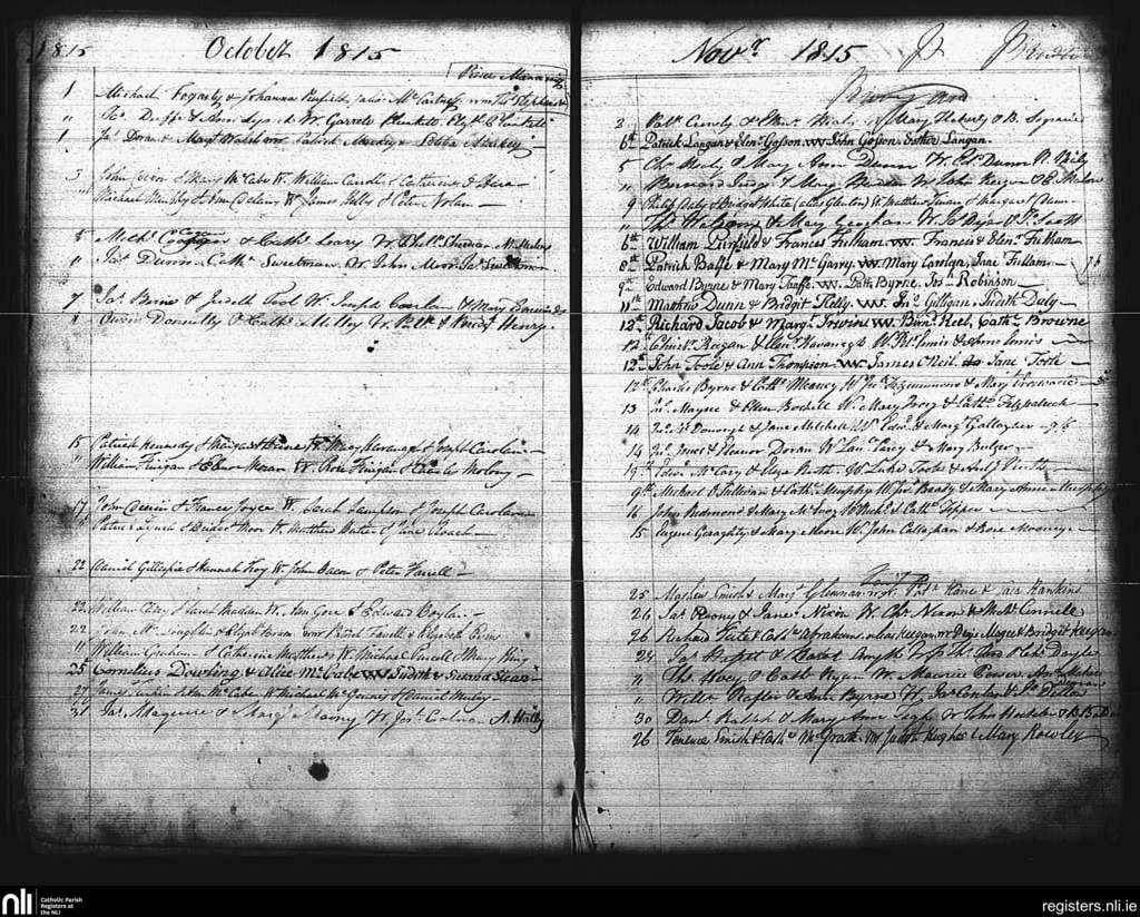 St. Mary's, Dublin city; County of Dublin; Archdiocese of Dublin. Marriages, Oct. 1815 to Nov. 1815