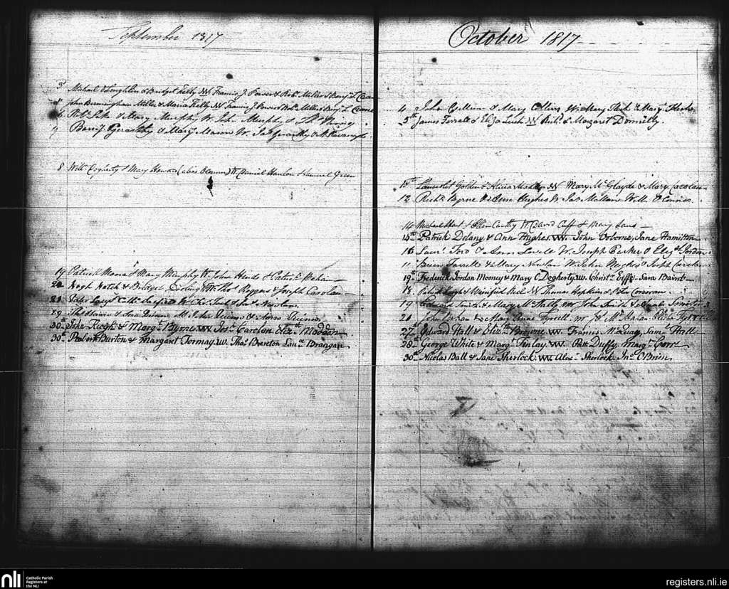 St. Mary's, Dublin city; County of Dublin; Archdiocese of Dublin. Marriages, Sep. 1817 to Oct. 1817