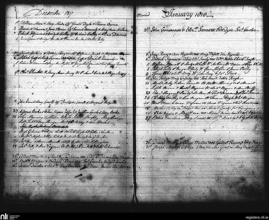 St. Mary's, Dublin city; County of Dublin; Archdiocese of Dublin. Marriages, Dec. 1817 to Jan. 1818
