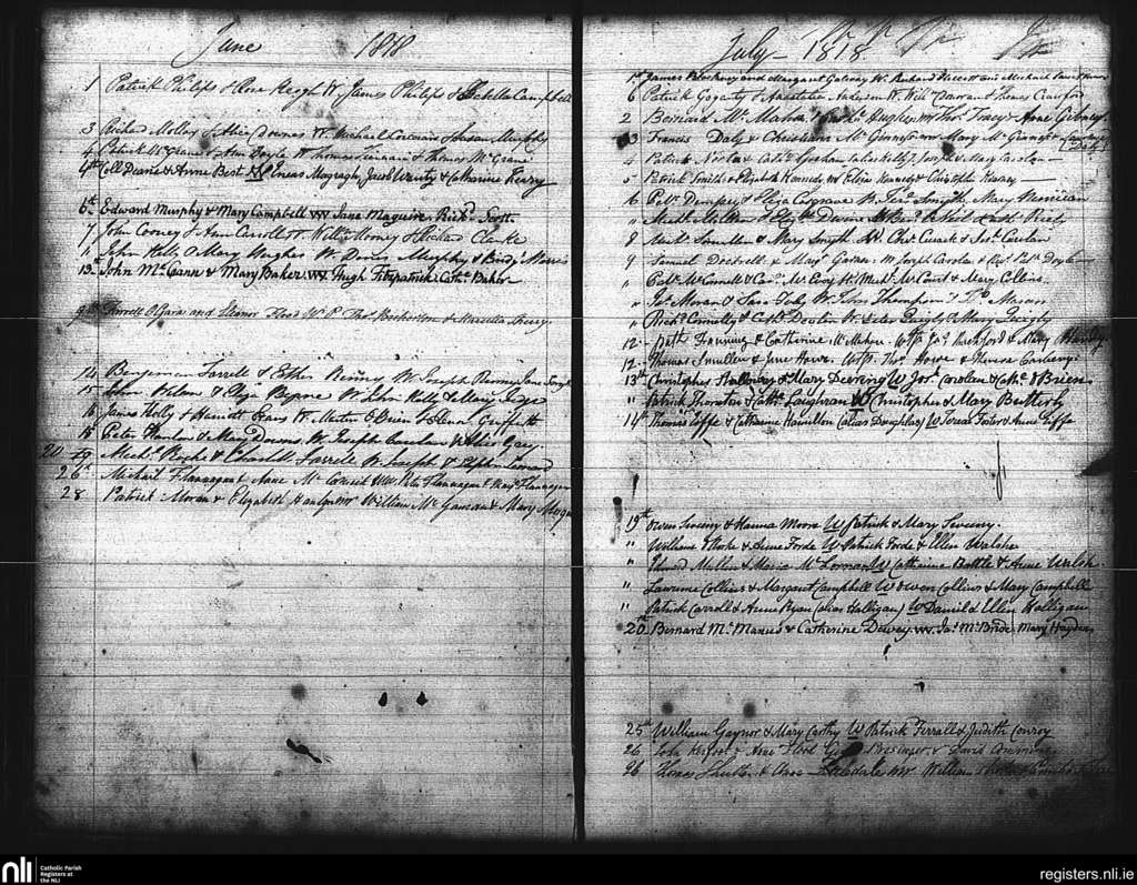 St. Mary's, Dublin city; County of Dublin; Archdiocese of Dublin. Marriages, June 1818 to July 1818