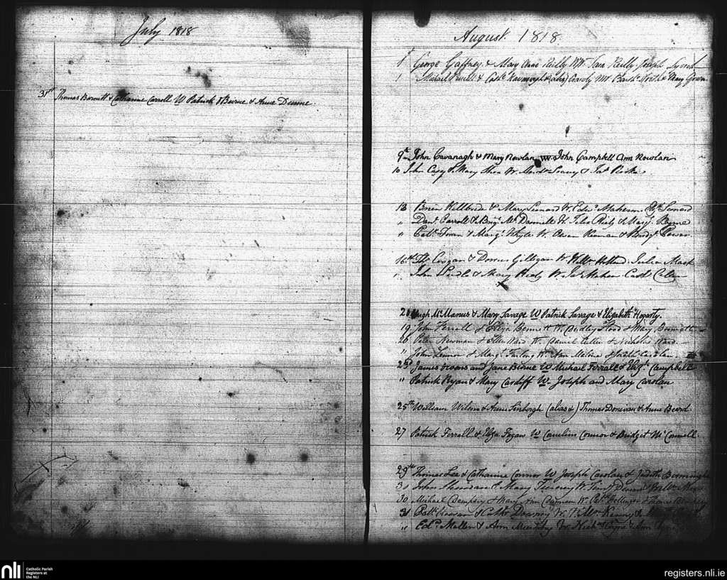 St. Mary's, Dublin city; County of Dublin; Archdiocese of Dublin. Marriages, July 1818 to Aug. 1818