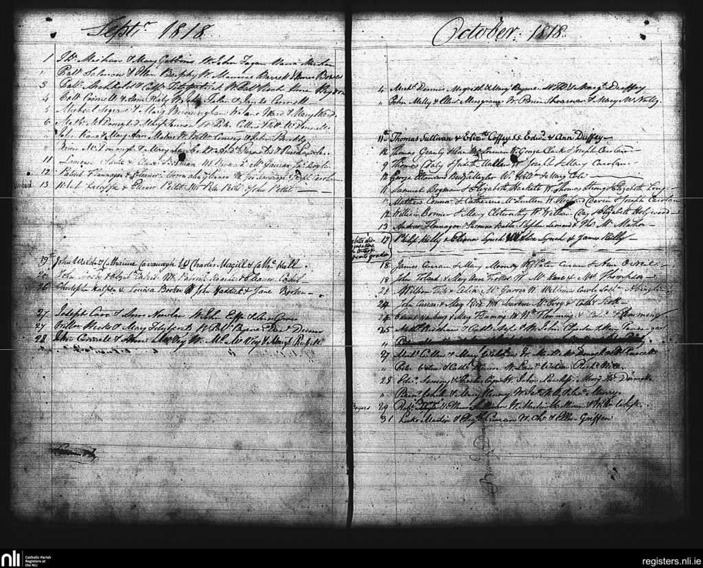 St. Mary's, Dublin city; County of Dublin; Archdiocese of Dublin. Marriages, Sep. 1818 to Oct. 1818