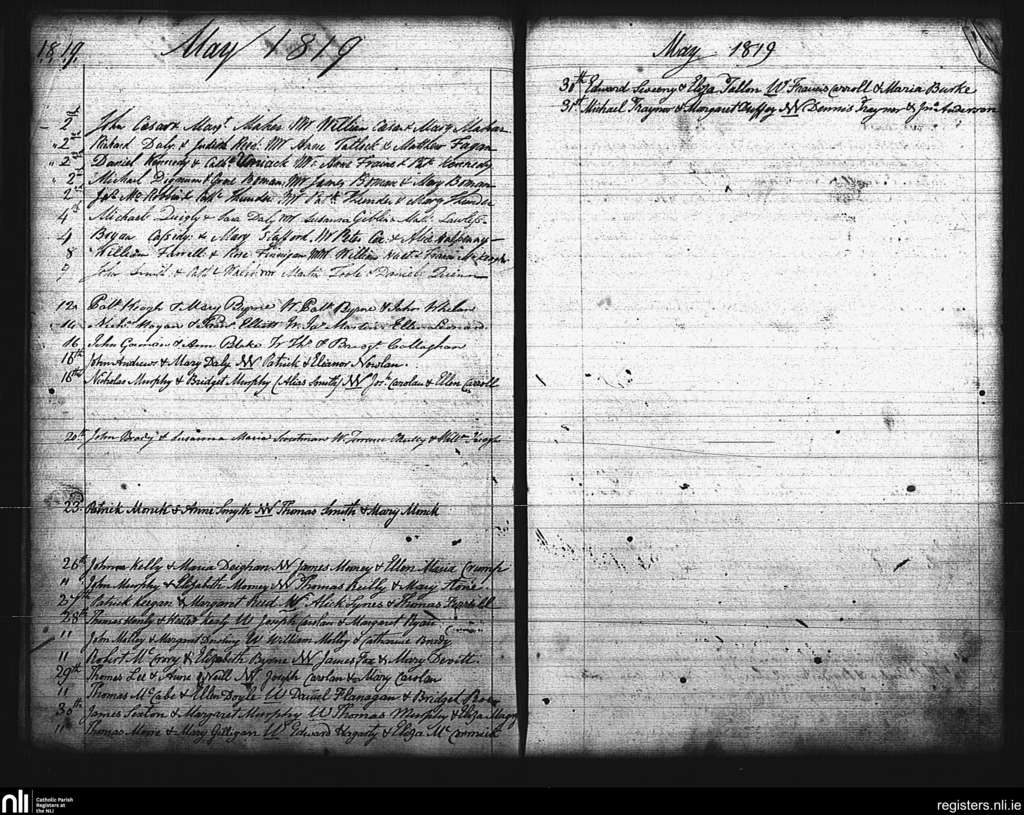 St. Mary's, Dublin city; County of Dublin; Archdiocese of Dublin. Marriages, May 1819