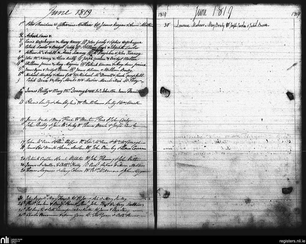 St. Mary's, Dublin city; County of Dublin; Archdiocese of Dublin. Marriages, June 1819