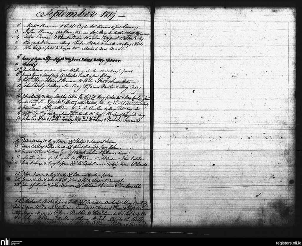 St. Mary's, Dublin city; County of Dublin; Archdiocese of Dublin. Marriages, Sep. 1819