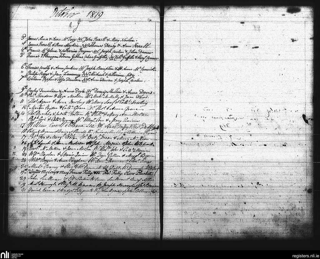 St. Mary's, Dublin city; County of Dublin; Archdiocese of Dublin. Marriages, Oct. 1819