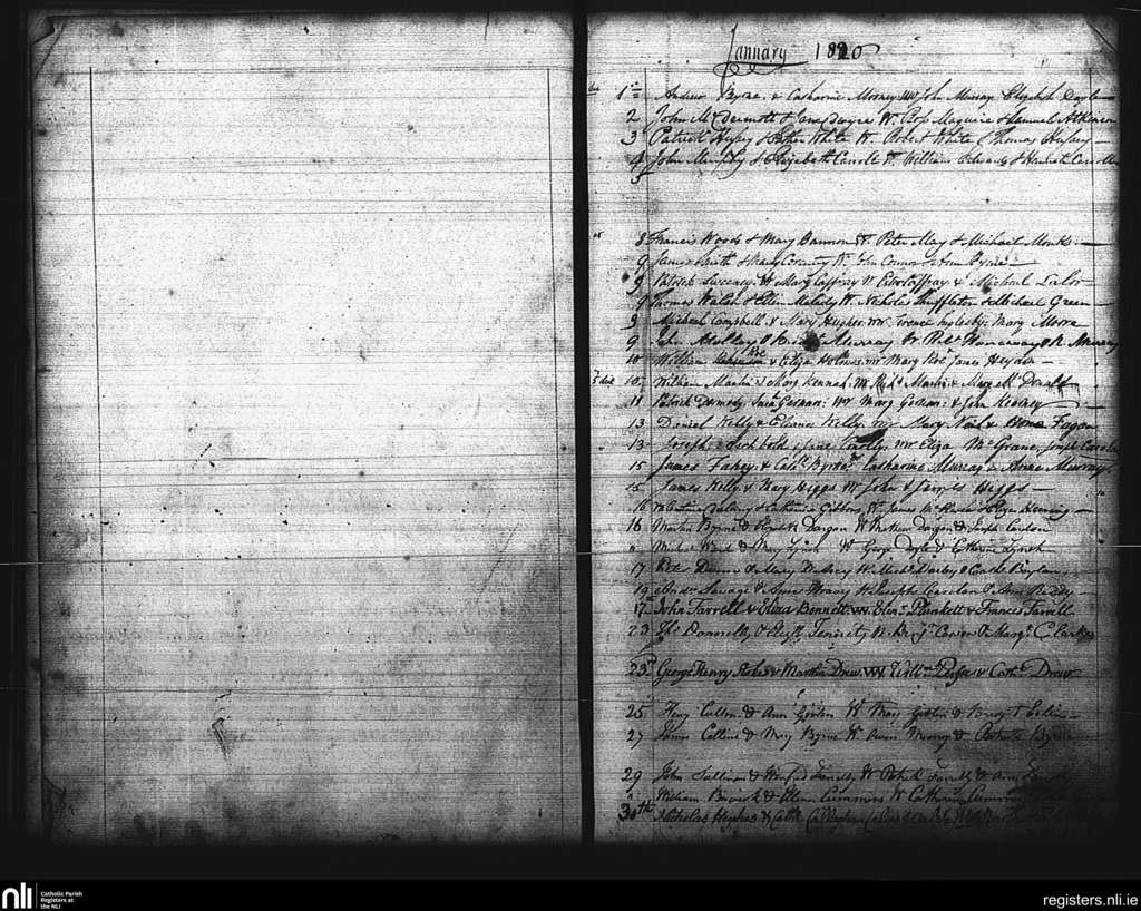 St. Mary's, Dublin city; County of Dublin; Archdiocese of Dublin. Marriages, Jan. 1820