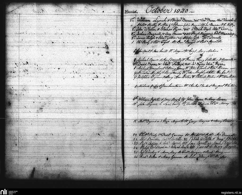St. Mary's, Dublin city; County of Dublin; Archdiocese of Dublin. Marriages, Oct. 1820