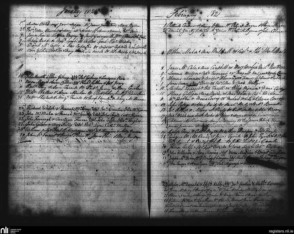 St. Mary's, Dublin city; County of Dublin; Archdiocese of Dublin. Marriages, Jan. 1821 to Feb. 1821
