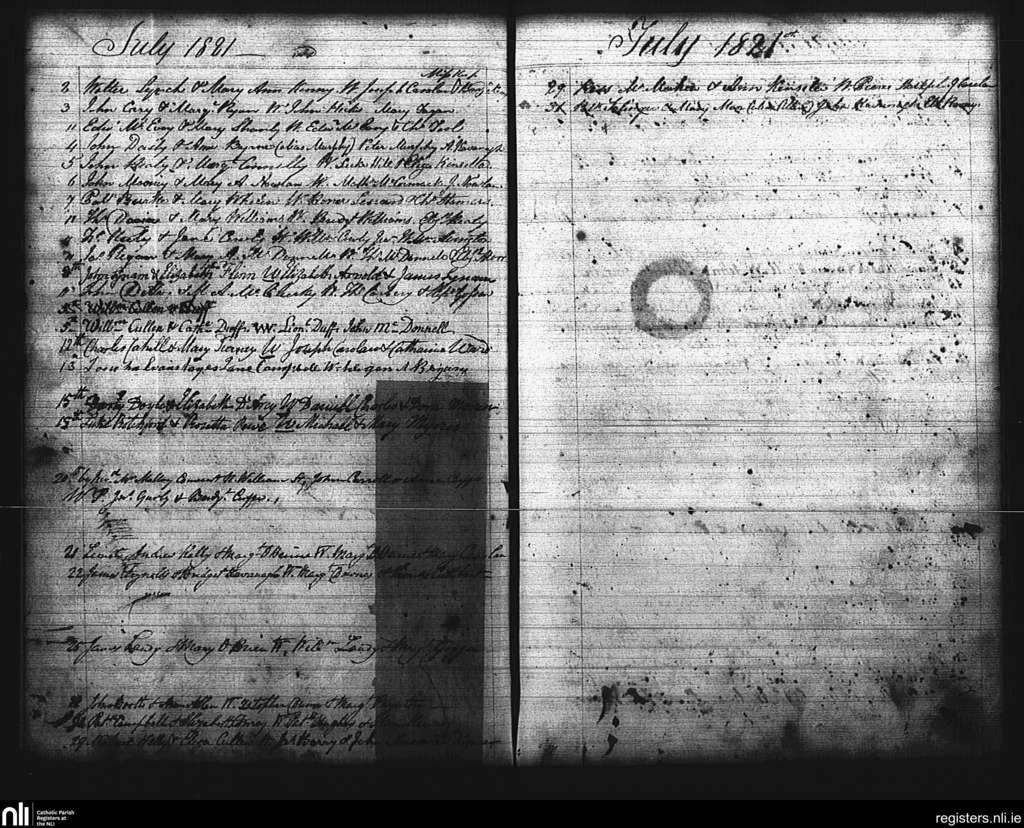 St. Mary's, Dublin city; County of Dublin; Archdiocese of Dublin. Marriages, July 1821