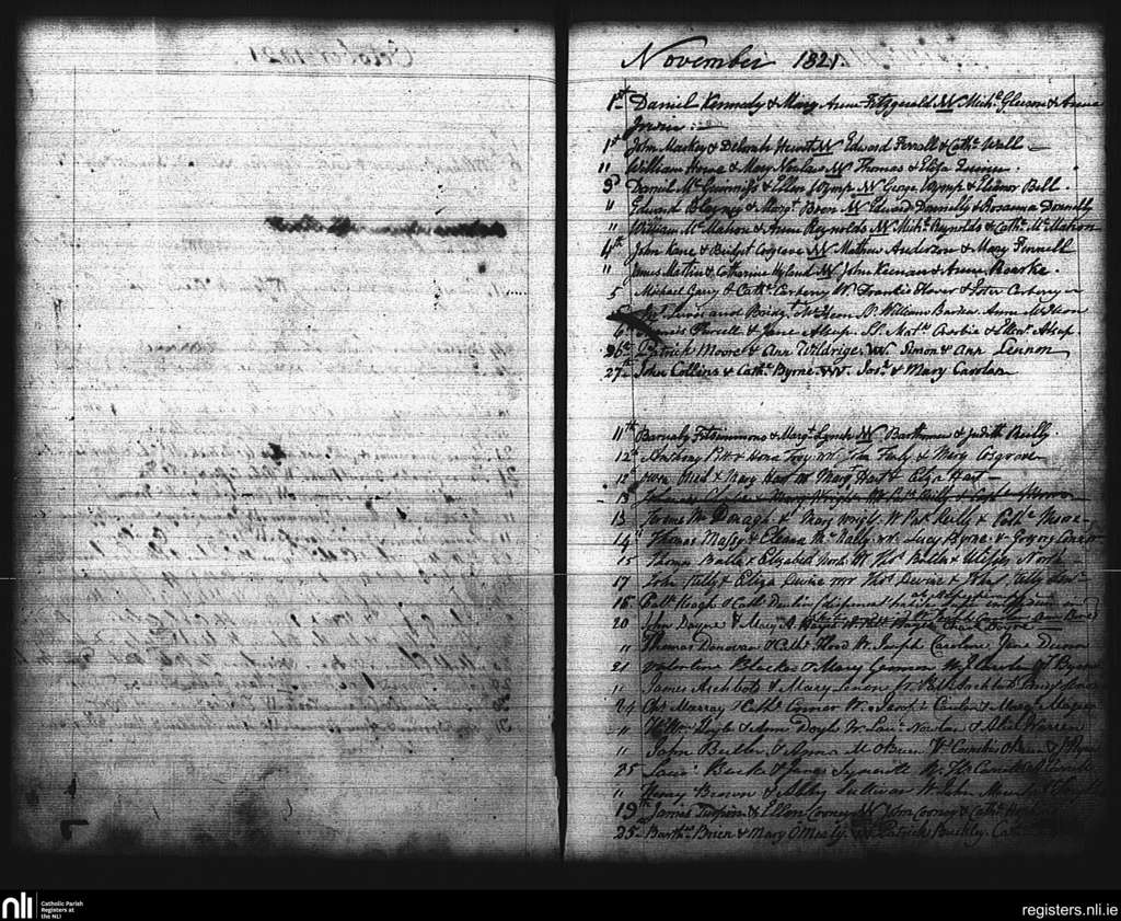 St. Mary's, Dublin city; County of Dublin; Archdiocese of Dublin. Marriages, Nov. 1821