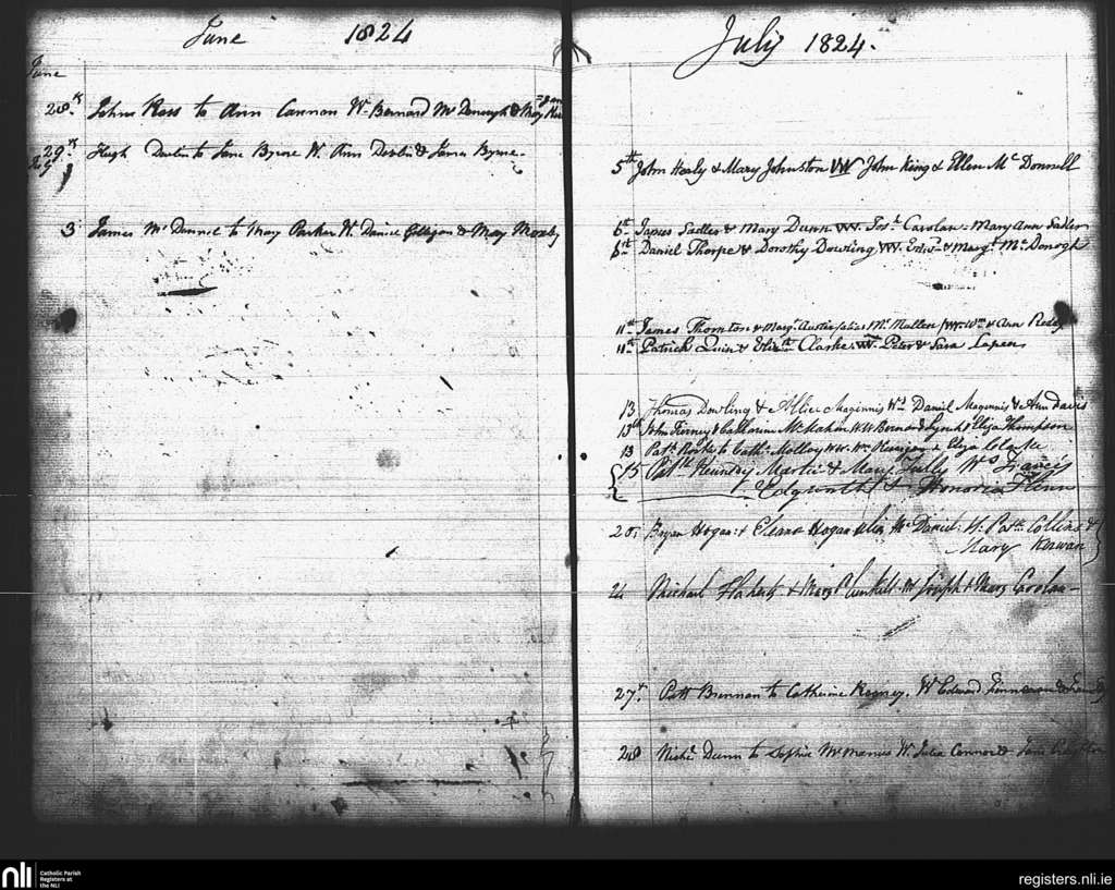 St. Mary's, Dublin city; County of Dublin; Archdiocese of Dublin. Marriages, June 1824 to July 1824