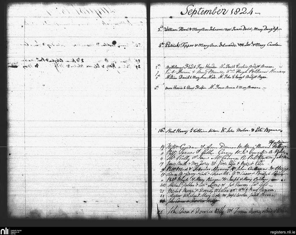 St. Mary's, Dublin city; County of Dublin; Archdiocese of Dublin. Marriages, Sep. 1824