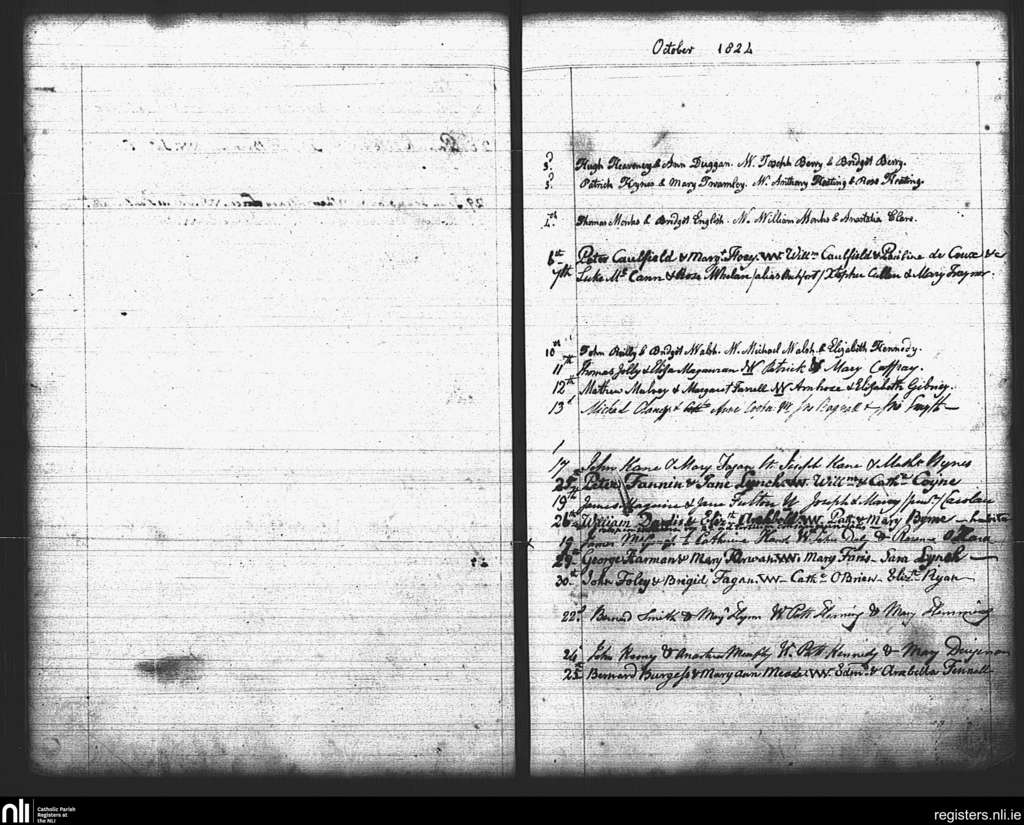 St. Mary's, Dublin city; County of Dublin; Archdiocese of Dublin. Marriages, Oct. 1824