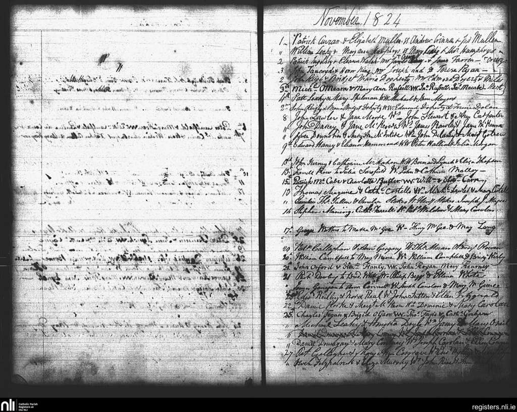 St. Mary's, Dublin city; County of Dublin; Archdiocese of Dublin. Marriages, Nov. 1824