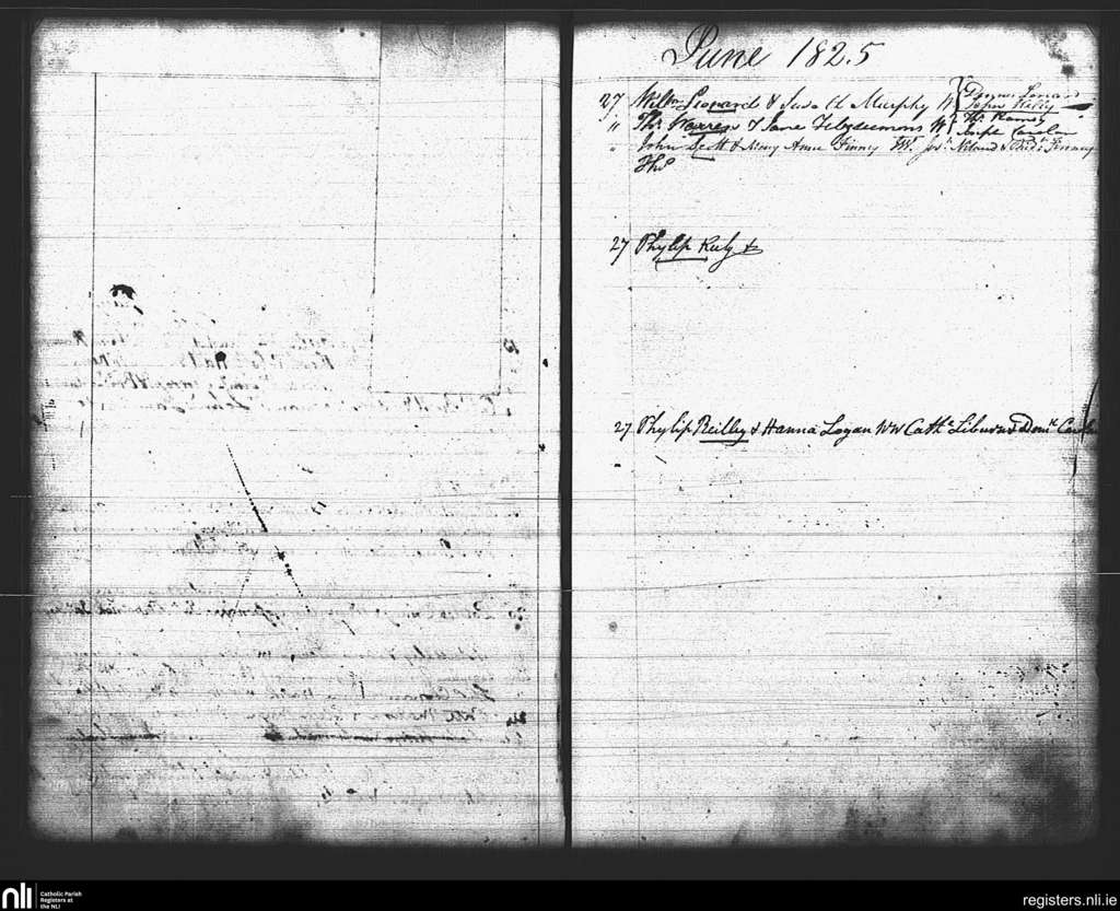 St. Mary's, Dublin city; County of Dublin; Archdiocese of Dublin. Marriages, June 1825