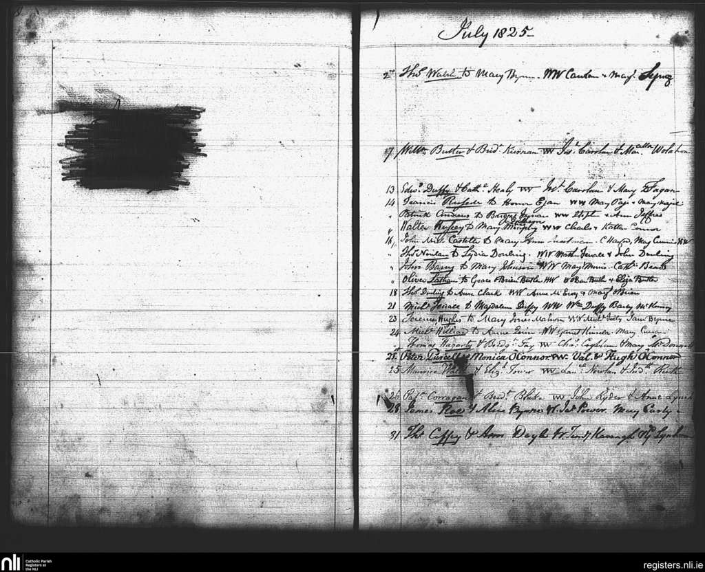 St. Mary's, Dublin city; County of Dublin; Archdiocese of Dublin. Marriages, July 1825