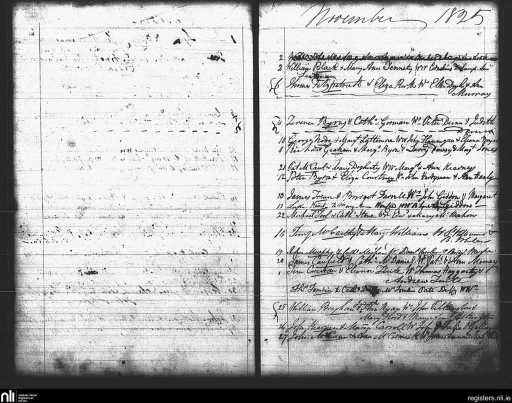 St. Mary's, Dublin city; County of Dublin; Archdiocese of Dublin. Marriages, Nov. 1825