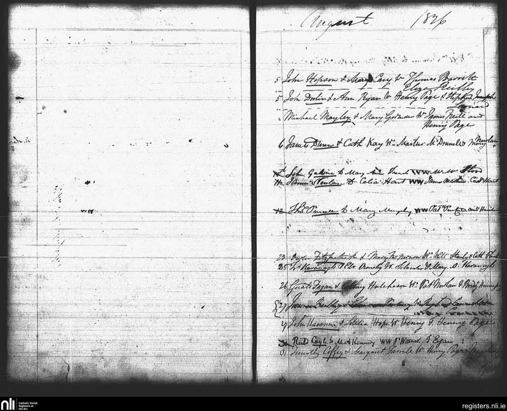 St. Mary's, Dublin city; County of Dublin; Archdiocese of Dublin. Marriages, Aug. 1826