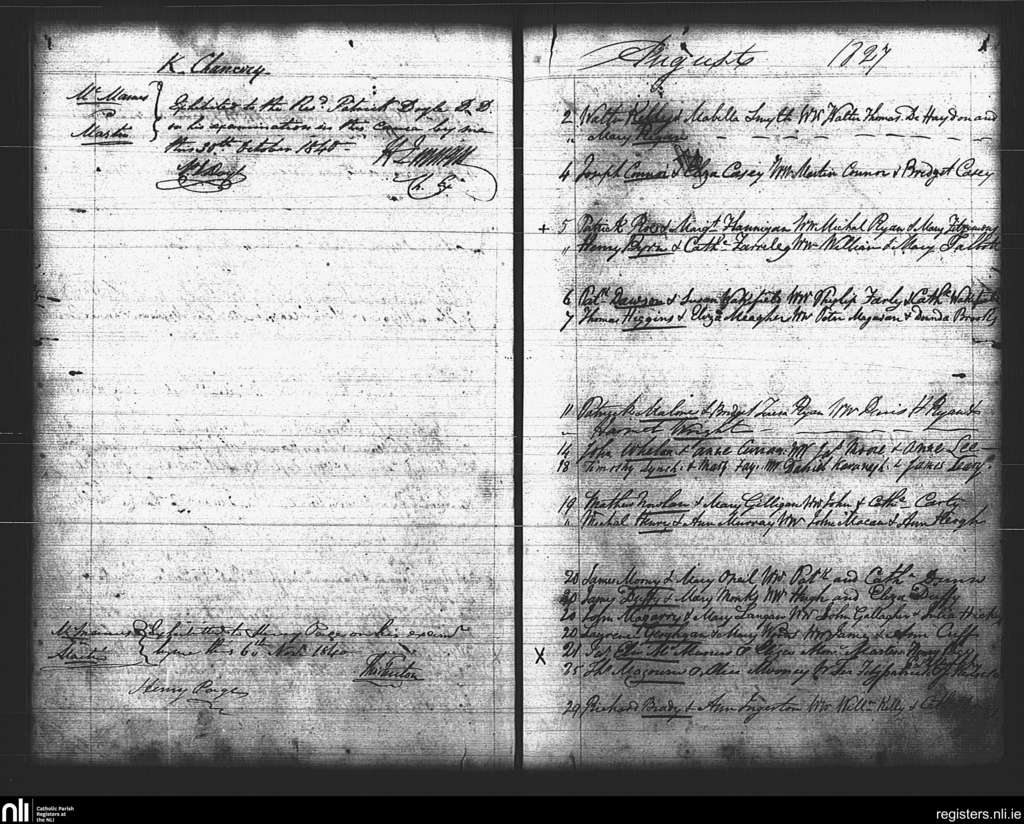 St. Mary's, Dublin city; County of Dublin; Archdiocese of Dublin. Marriages, Aug. 1827